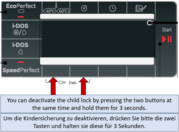 Drücken Sie die „Play“-Taste (rechts neben dem Display), um den Waschvorgang zu starten.